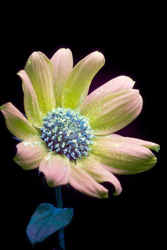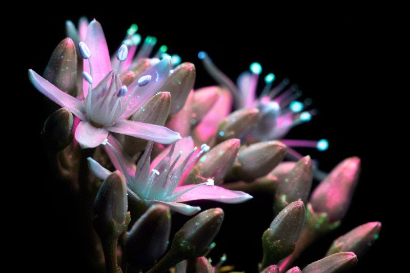 Mediante luces UV Craig Burrows ha intentado tomar fotografías de algunas flores que tuviesen reacciones ante este ambiente; el resultado es un brillo que parece de otro mundo y que es difícil de pasar de alto.