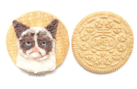 Esta artista culinaria ha creado unos curiosas obras de arte dentro de galletas oreo; estas “escultoras” tienen forma de algunos logotipos de series famosas y de algunos personajes famosos el “monstruo come galletas“, “Los Simpson” entre otros.