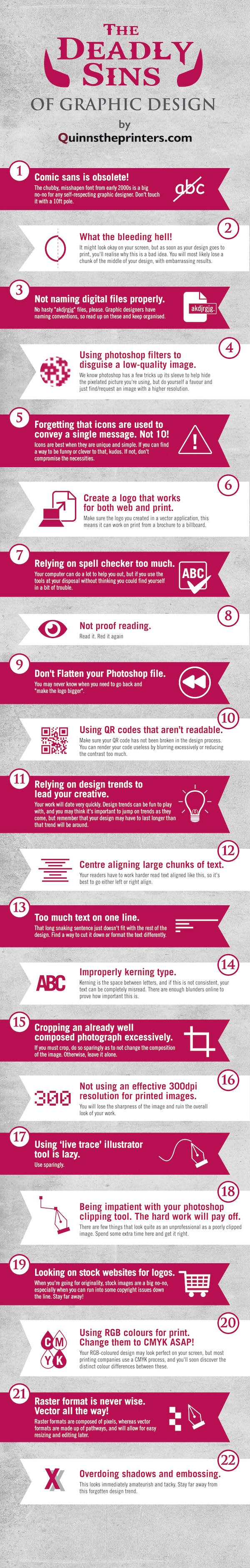 Sin más, aquí te dejo esta infografía para que conozcas algunos de los pecados mortales del diseño gráfico.