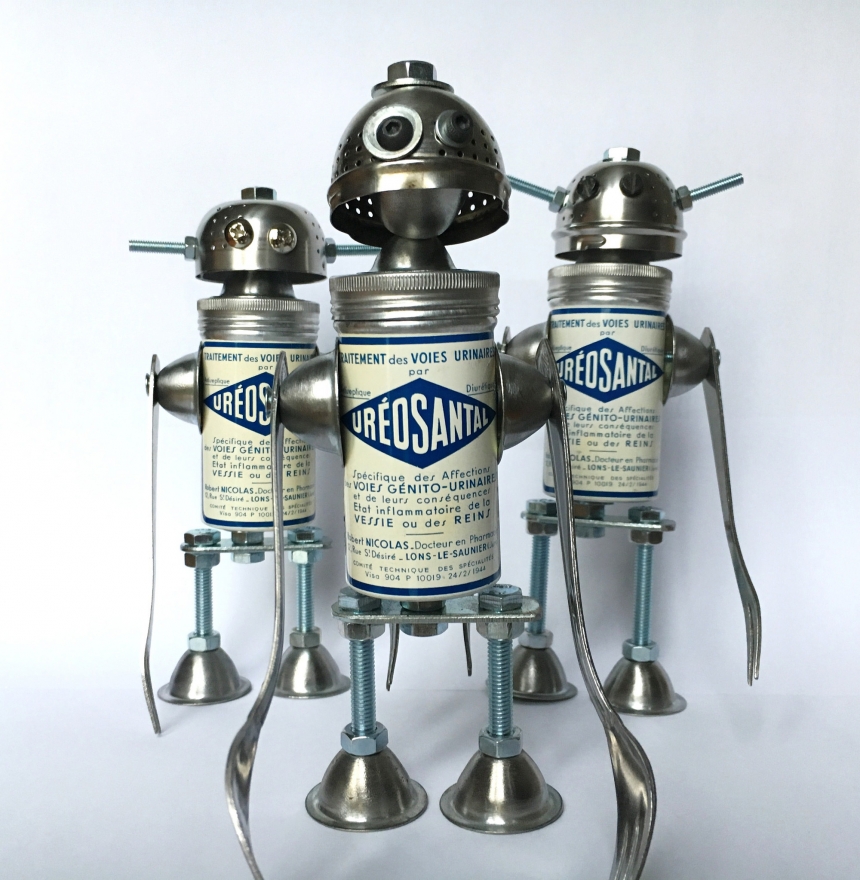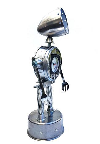 Gille Monte Ruici, es el artista que ha creado estas geniales esculturas roboticas a base de materiales reciclables; Ruici señala que uno de sus principales objetivos era darle una “segunda vida” a materiales abandonados; por lo que sus esculturas están realizadas a base de utensilios de cocina, pernos y tornillos.