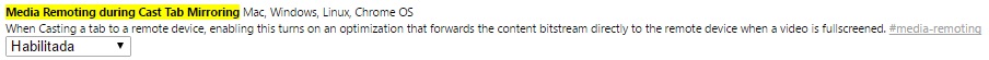 - En una nueva pestaña de su navegador (Google Chrome) meter la siguiente URL: “chrome://flags/#media-remoting”