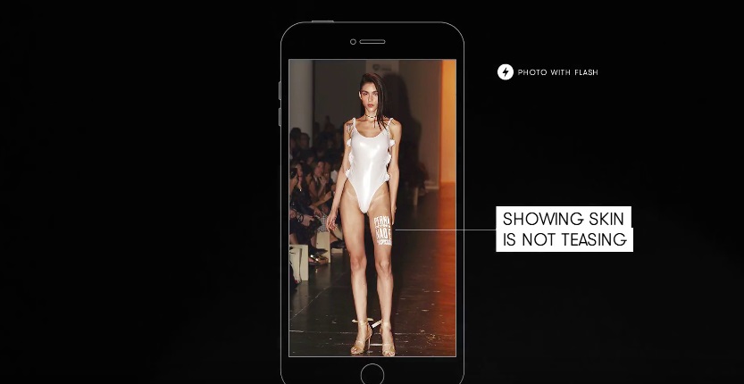 Esta campaña busca crear conciencia contra el sexismo; y para ello ha pedido a varias modelos se dejen marcar con tinta invisible ciertos mensaje contra esta practica; cabe señalar, que estos mensajes solo eran visibles al ser expuestas al flash de las cámaras.