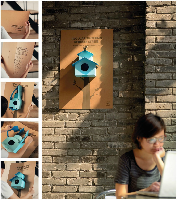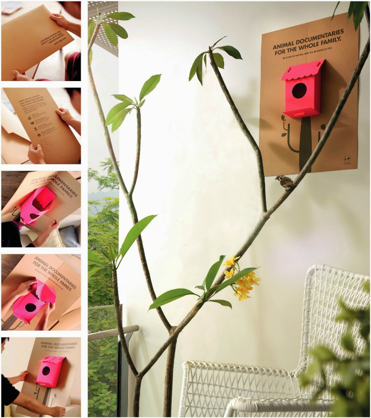 Posters que se convierten en casas para aves