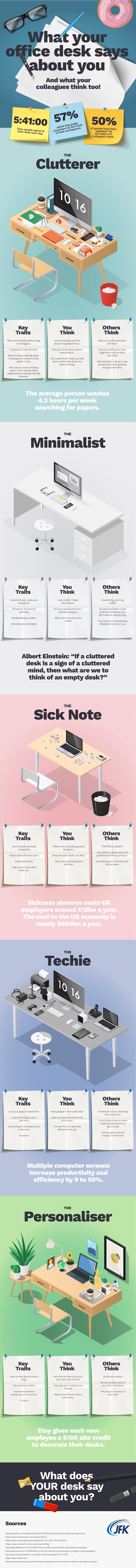 Esta infografía nos muestra que es lo que dice nuestro espacio de trabajo en la oficina y que es lo que podrían pensar nuestros colegas de nosotros; señalando que en mi personal caso caigo en la categoría de “El minimalista“.