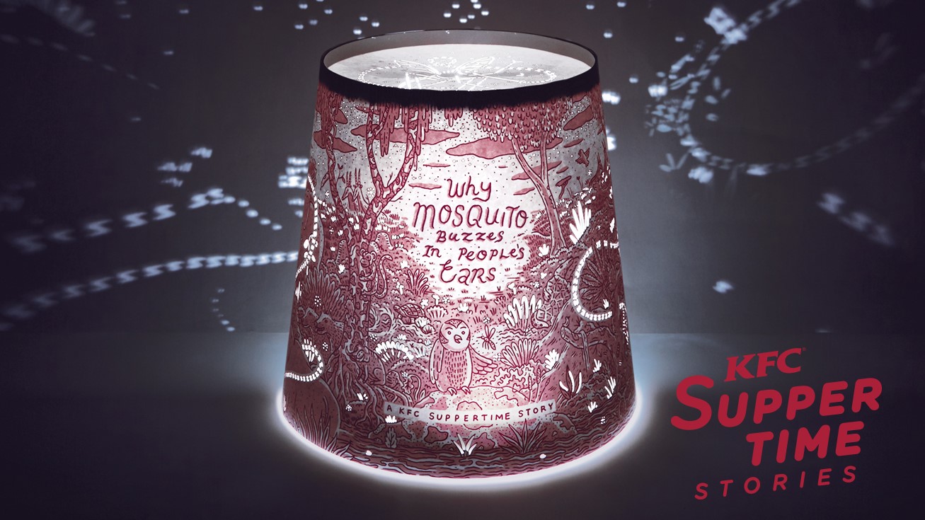 KFC Suppertime Stories es una apuesta de KFC en América del Sur; la cual, es encabezada por su nuevo diseño interactivo de Packaging, el cual, transforma la clásica cubeta de KFC en una lampará cuenta cuentos.
