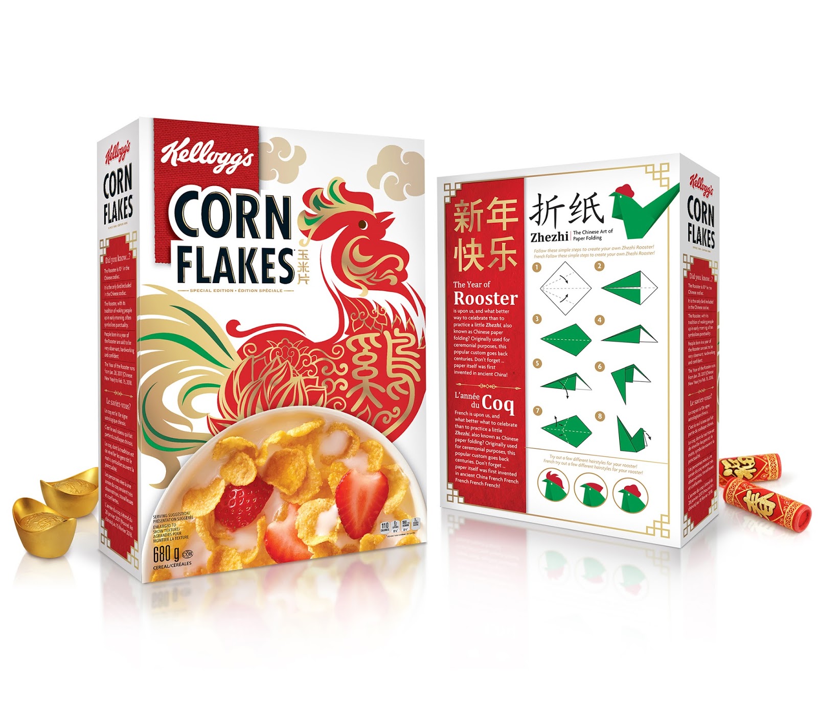 Lleno de elementos que honran la cultura y festividad de origen asiático; este nuevo diseño de packaging de Kellogg’s es un gran ejemplo de cómo se debe hacer un buen y atractivo Branding para la marca; pues, resulta atractivo inclusive para aquellos que no son afines a dicha celebración.