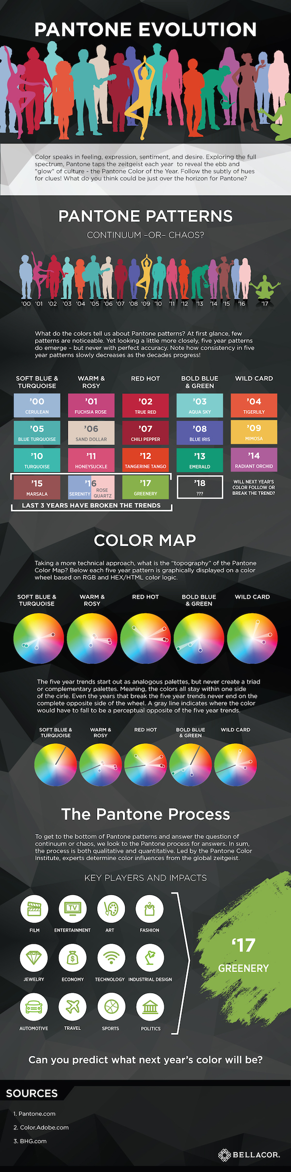 El día de hoy quiero compartir con ustedes una interesante infografía que muestra todas las selecciones anuales de PANTONE; así como su evolución a lo largo de 18 años; los cuales, no parecen los último debido a que como ya mencionamos cada día está marcando tendencia.