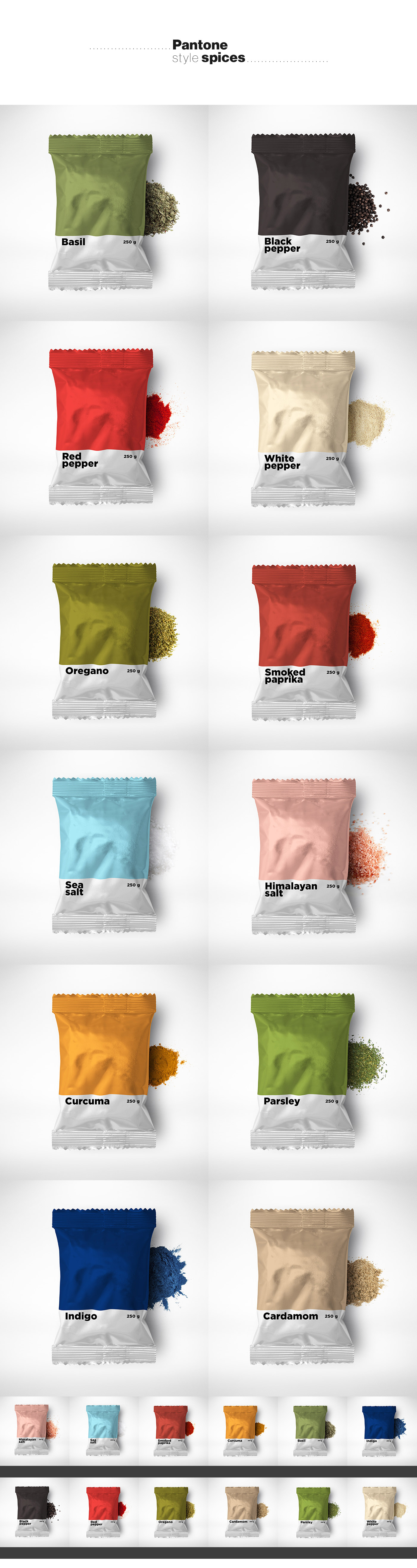 Packaging para especias inspirado en colores Pantone