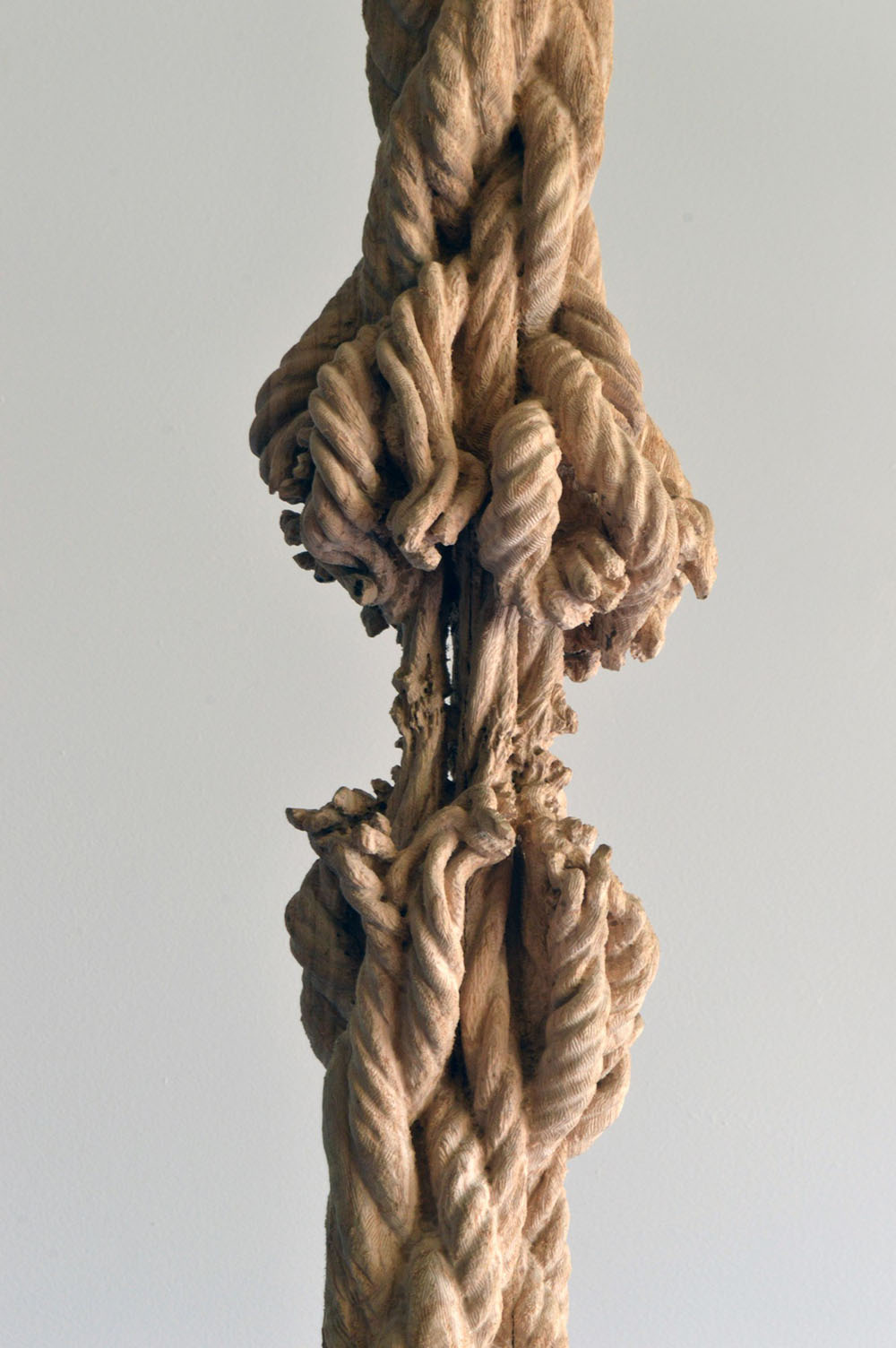 Visto rápidamente uno puede pensar que se trata de dos piezas de madera sujetadas por una cuerda que emerge del interior de ambas piezas; no obstante, si uno presta más atención es posible darse cuenta que se trata de una escultura.