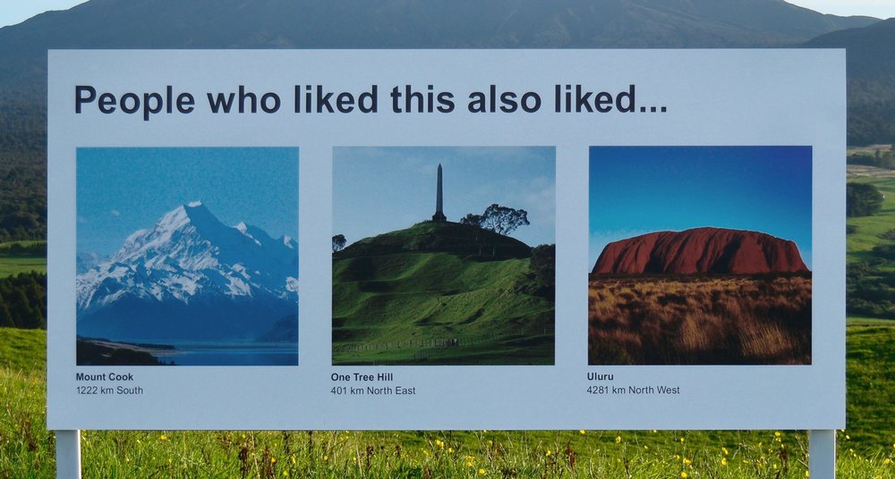 Es por eso, que los artistas Scott Kelly y Ben Polkinghorne han creado unos magníficos carteles que han distribuido en algunos bellos paisajes, los cuales contienen algunas recomendaciones con la leyenda “People who liked this also liked…“, similar a los contenidos que encontramos en Internet.