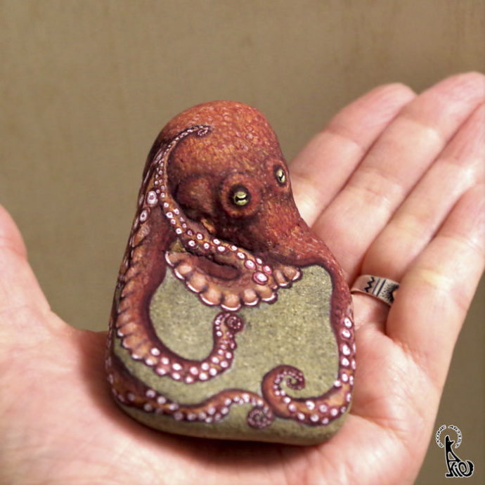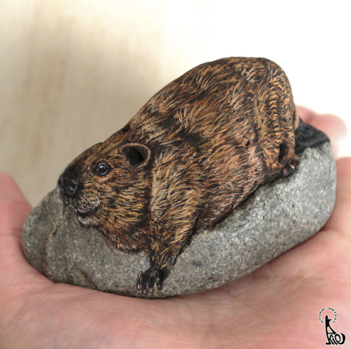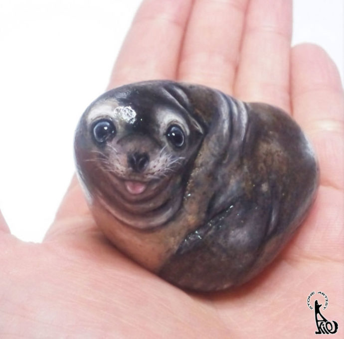Este es el caso de Akie Nakata, un artista que ha realizado una genial muestra de arte en piedras; las cuales, pierden su apariencia de simple piedra para unirse al reino animal según el pincel de Nakata.