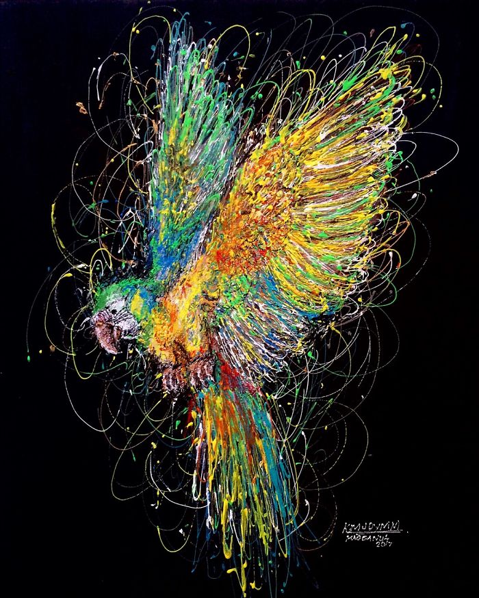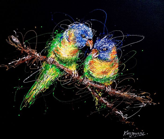Kimberly Joy es una enfermera con gusto por el arte que ha logrado una combinar sus dos pasiones de una manera magistral; mediante el uso de jeringas cargadas con pintura ha realizado hermosas obras de arte que parecen hechas con finas hileras que denotan una gran habilidad.