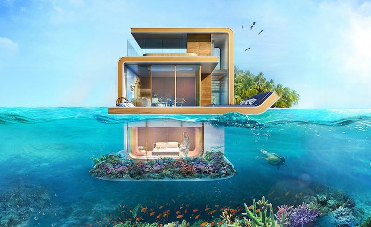 Una casa con tres plantas; dos flotantes y una sumergida en el fondo del mar arábigo son parte de este interesante proyecto de bienes raíces que tiene lugar en Dubai.