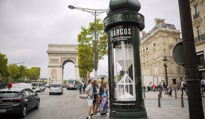 Esta interesante mecánica de Marketing fue realizada bajo la responsabilidad de la agencia de publicidad Ubi Bene de París; la cual, instalo en una estructura con forma de reloj de arena de duración de 48 horas para contar el tiempo que faltaba para el estreno de la tercera temporada de Narcos.