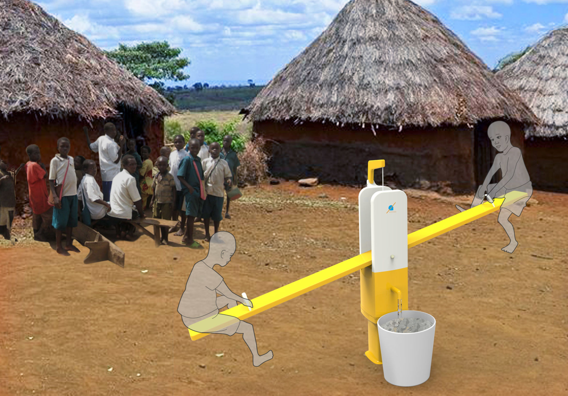 Un genial diseño que haría divertido sacar agua entre dos personas en las zonas más áridas del planeta; fomentando la diversión y la convivencia; aún cuando se sacrifique un poco de practicidad.