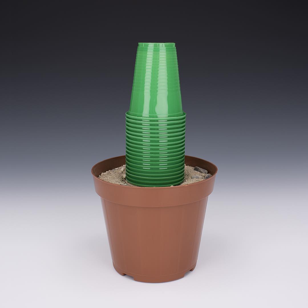 Esta ilusión es muy impresionante pues ha sido realizada con objetos de plástico (peines, guantes y juguetes) para crear un paisaje artificial de “plantas sintéticas“.