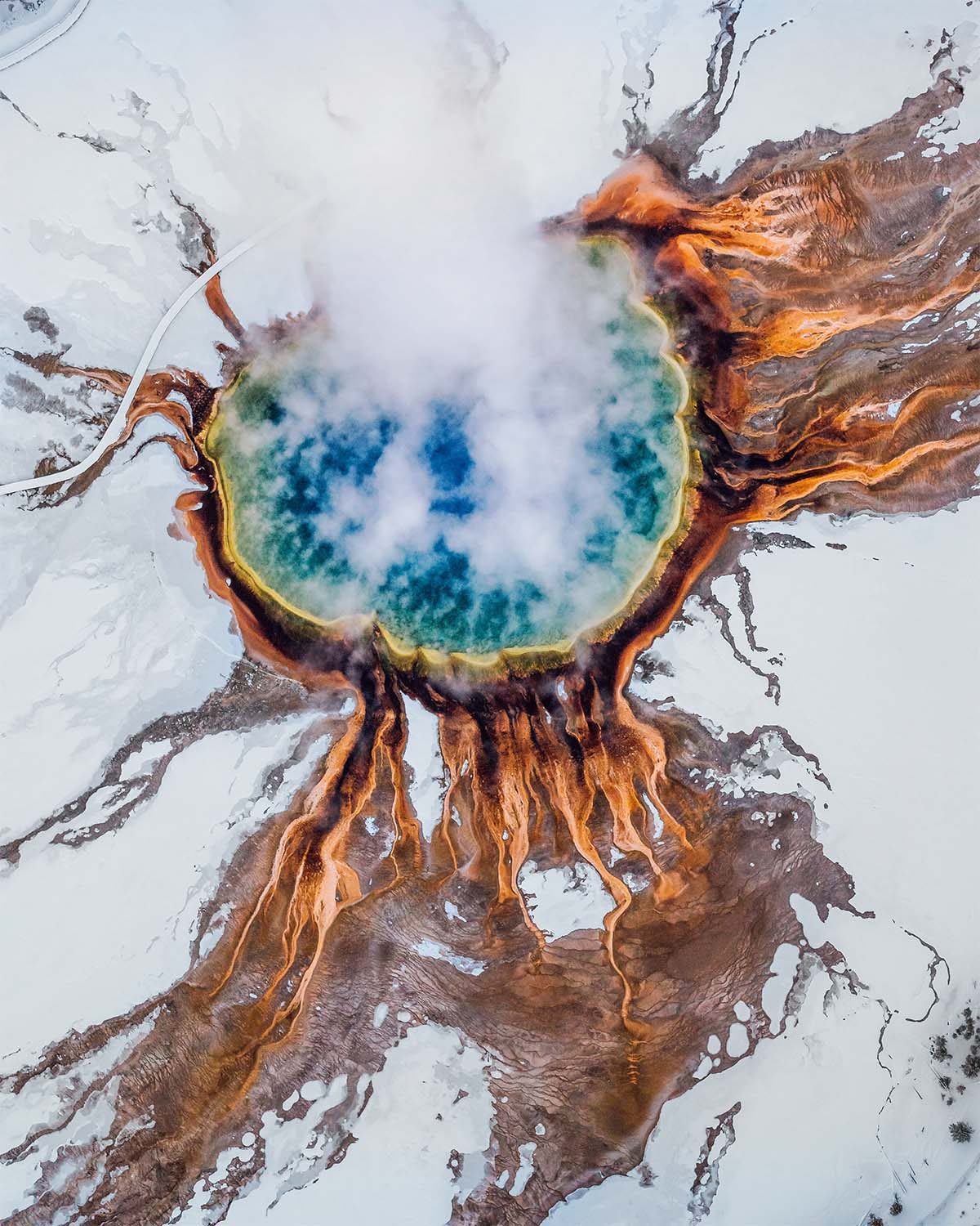 Estas fotografías retratan varios elementos desde el aire como la en Grand Prismatic Spring en el parque nacional Yellowstone entre otros; los cuales valen la pena igualmente admirar.