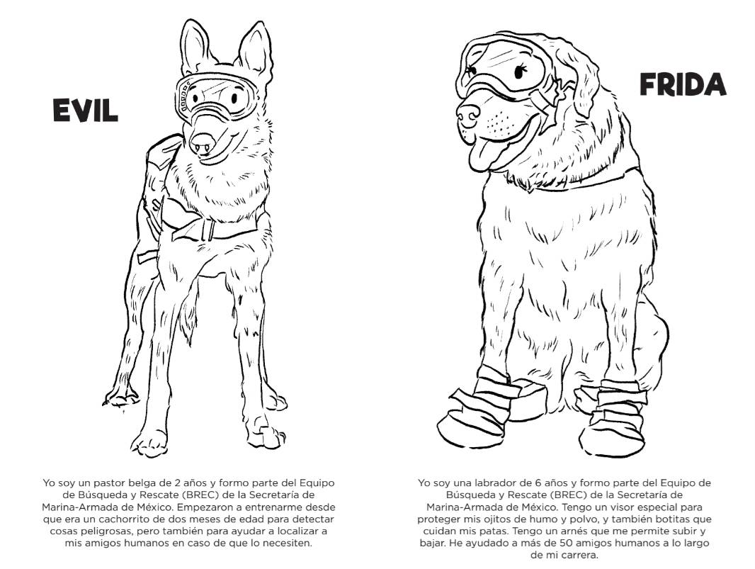 Es por eso, que la diseñadora y creativa Lucie Torres ha creado un genial mini libro para colorear; el cual contiene imágenes de estos héroes de cuatro patas con el mensaje “Fuerza México“, y que Torres ha utilizado para llevar alegría a niños que han sufrido los estragos de esta catástrofe natural.