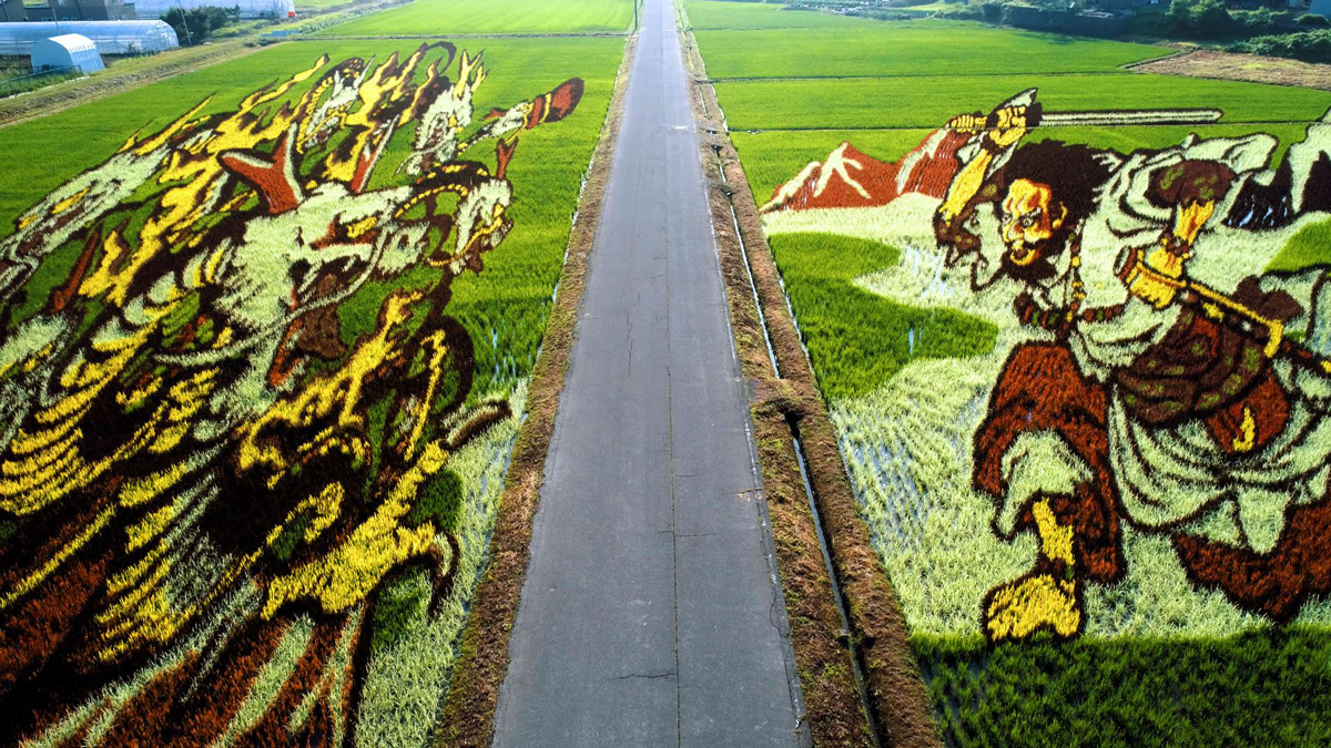 En Inakadate, Japón hay una atracción turística realizada por maestros arte y la comunidad; esto debido que como parte de una estrategia para atraer turismo; el gobierno local organiza año con año un concurso para decidir que diseños serán plasmados a lo largo de los campos de arroz.
