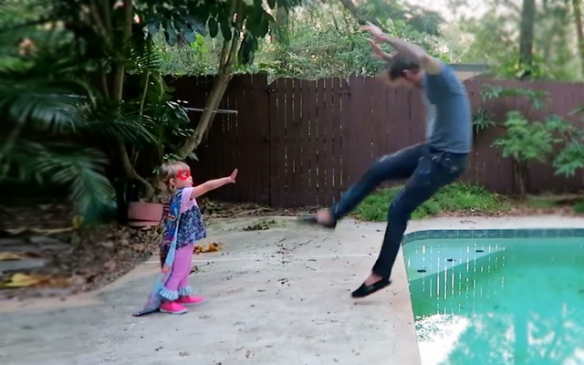 Se trata de un corto vídeo en el que aparece un padre con su hija jugando en múltiples escenarios respetando que ella tiene super poderes.