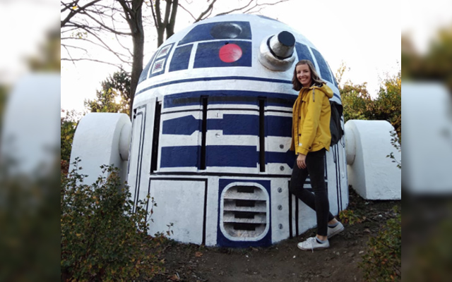 A pesar de su lúgubre significado un artista ha querido darle otra carà a un antiguo búnker de ese periodo bélico; y para ello, se ha inspirado en un personaje emblemático de la saga Star Wars, estamos hablando de R2-D2 uno de los robots màs conocidos en el mundo.