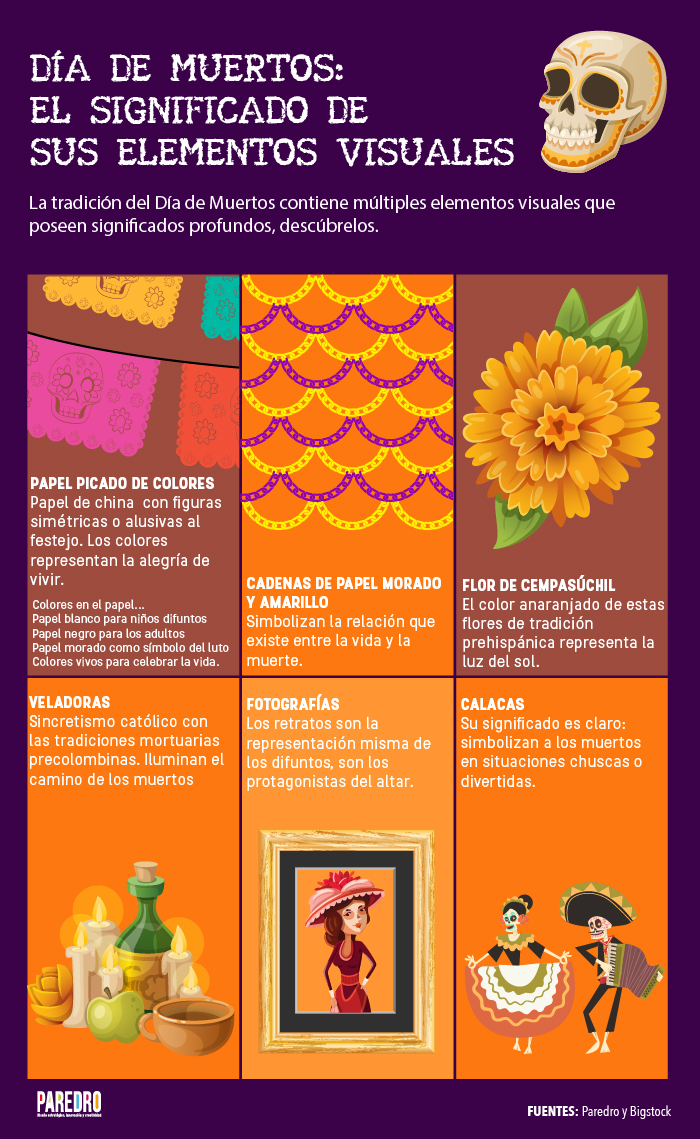 El día de los muertos esta cerca y sus significados muchas veces son ignorados por los que los festejamos; es por eso, que el día de hoy les traemos un poco de cultura en forma de infografía, la cual ha sido creada por el sitio web Paredro y que aborda un tema interesante, los significados visuales del día de muertos.