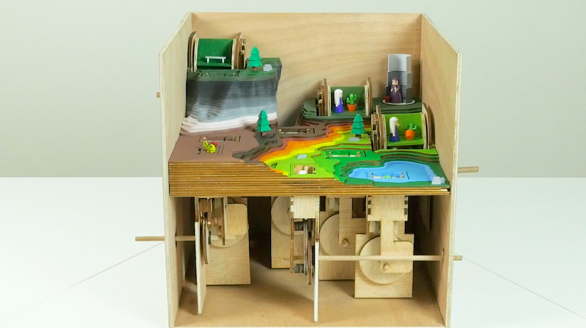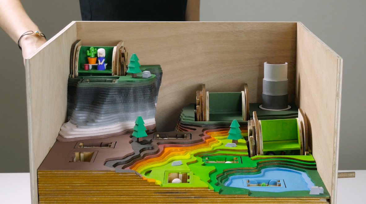 Esta genial obra mecánica de madera nos presenta un cuento para crear conciencia sobre un tema importante, el acoso escolar; el cual en los últimos tiempos ha cobrado algunas víctimas por sus efectos aislantes y depresivos que tiene en la juventud.