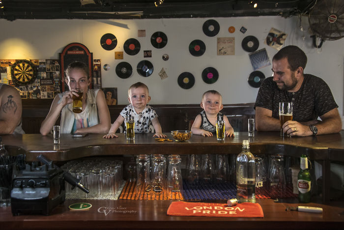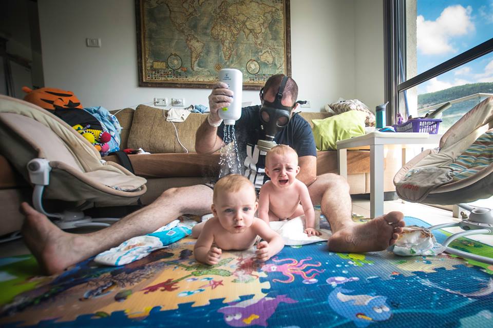 Es por ello, que haciendo uso de su gran capacidad creativa que el fotógrafo Guy Vainer ha realizado una divertida serie fotografica para sus gemelos, claro, con la ayuda de su esposa.