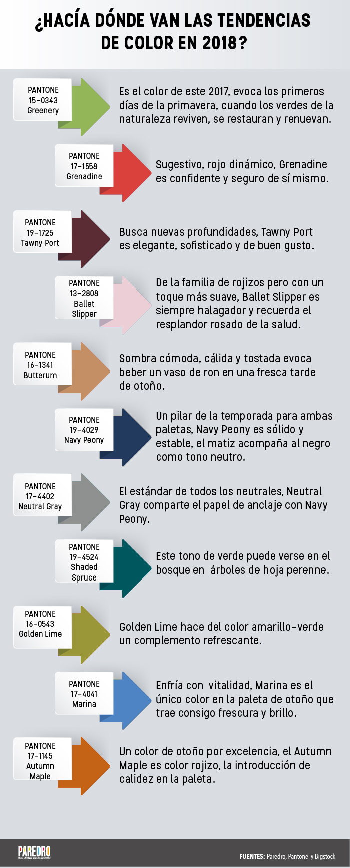 El cual ha elaborado una genial infografía con lo que ellos consideran los antecedentes que pueden regir las próximas tendencias de color 2018.