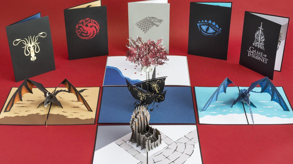 Se trata de unas geniales tarjetas pop-up realizadas por Love Pop Cards y HBO; las cuales contienen a diversos elementos de personajes y casas de la serie.