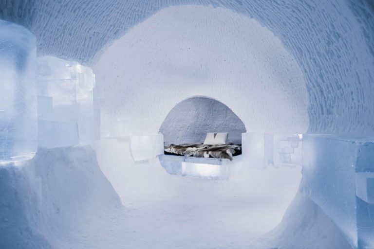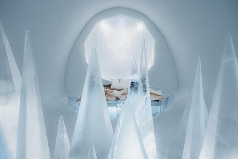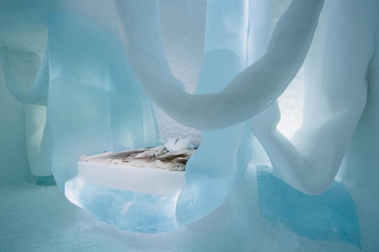 Cada año y con un nuevo diseño se inaugura el Ice Hotel en la ciudad de Jukkasjärvi, Suecia; un lugar único que deja ver la creatividad de diseñadores, decoradores y artistas debido a que cada habitación, pasillo y comedor están hechas desde cero con ayuda de puro hielo.