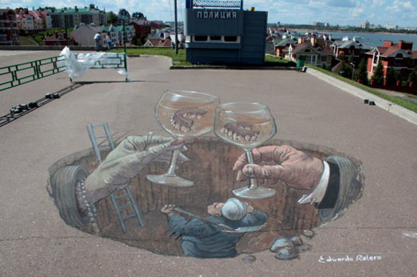 El día de hoy queremos brindar un poco de inspiración con el trabajo del artista argentino Eduardo Relero; el cual, usa las calles de varias ciudades alrededor del mundo para plasmar sus geniales obras, las cuales suelen ser complementadas con la participación de los transeúntes que se encuentran en el lugar de montaje.