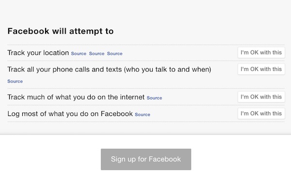 Derivado de estas manifestaciones, el diseñador Marten Bjork se ha dado a la tarea de crear un página de inicio de registro en favor de la transparencia que busca darle información al usuario de como será tratada su información, y por supuesto, le da la alternativa de estar o no de acuerdo con el uso de determinadas funciones; señalando que esta pagina es como deberia haber sido Facebook desde un principio, totalmente transparente.