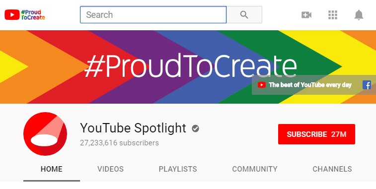 YouTube se une a la fila de marcas que apoyan a la comunidad LGTBI como lo ha hecho Playboy, Google y demás.