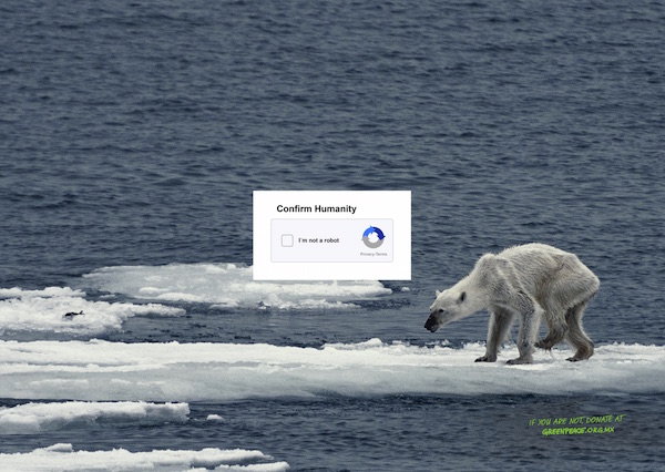 Siguiendo esa lógica, Greenpeace ha lanzado su nueva e impactante campaña llamada “Confirm Your Humanity” creada por la agencia DDB México; la cual, no consta más que de un “captcha” que nos pide conformar nuestra humanidad al tener enfrente imagenes desgarradoras como animales muriendo de hambre o muertos.