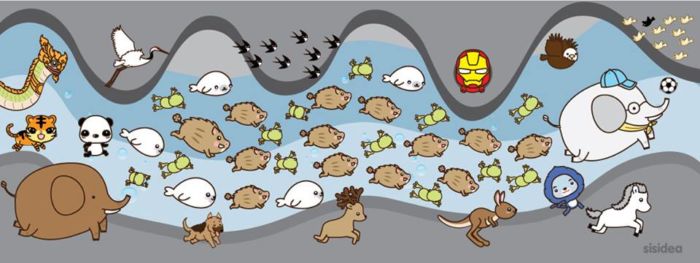 Los Jabalíes, representan a los 12 niños y a su entrenador que se encontraban atrapados en las cuevas, las ranas, a los buzos rescatistas que instruyeron a los niños en su travesía, el elefante blanco, representa al encargado de esta operación de rescate Narongsak Osottanakorn, el caballo blanco, a todos los participantes que ayudaron desinteresadamente y las focas blancas a la armada Tailandesa que presto su ayuda y recursos, así como a la unidad K9 que presto sus servicios y que es representada como un perro.