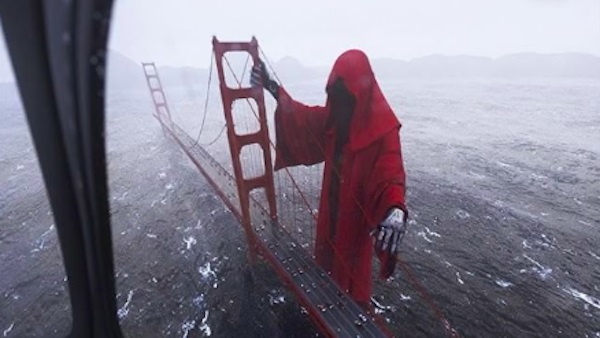 Este vídeo muestra una tenebrosa figura encapuchada de color rojo que ve el paso de los vehículos en el iconico puente Golden Gate en San Francisco; algo impresionante, peor que fue obra del mencionado Justin Leduc con el uso del programa Cinema 4D.