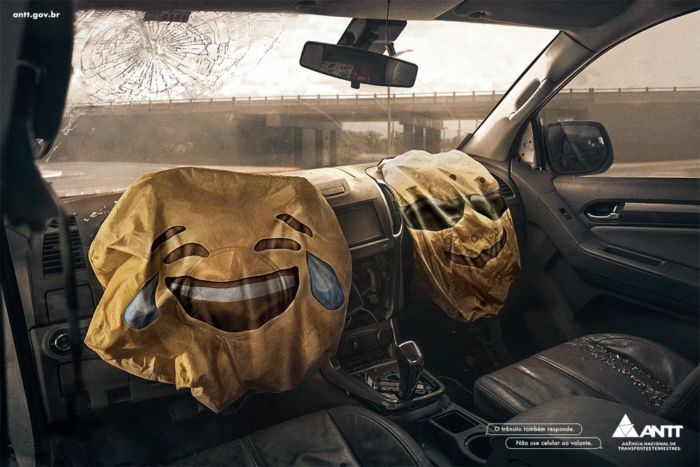 Esta campaña creada por el diseñador Maxwell Junior; es una impresionante fuente de sensibilización que busca reducir los accidentes por esta causa con ayuda de la Agencia Nacional de Transportes Terrestres de Brasil bajo el titulo: “El tráfico también responde. No utilice el móvil al volante“.
