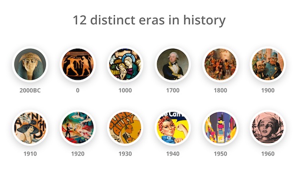 Estas eras han sido representadas por la agencia Studio Bros; la cual, ha clasificado y representado cada era y sus paletas con obras de arte pertenecientes a cada periodo.