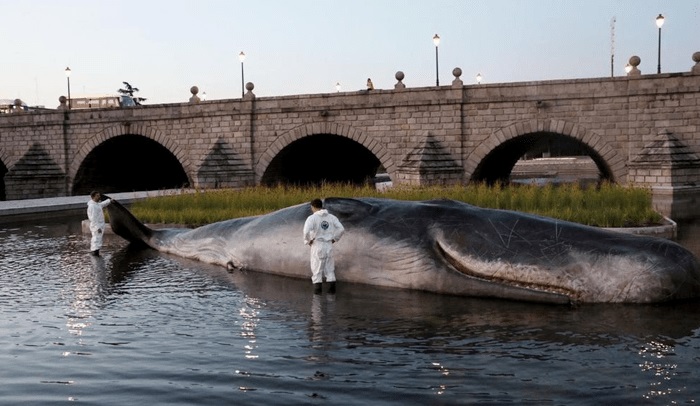 Como parte de una campaña de conciencia en favor del medio ambiente; una organización conocida como Captain Boomer ha viajado por diversas ciudades estableciendo una escultura hiperrealista de una ballena encallada para crear conciencia sobre el medio ambiente y el cambio climático.