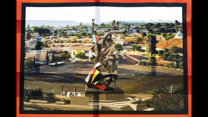 Cabe señalar que propiamente no es una re-diseño de la estatua de la libertad; ya que, será construida y denominada como la “Virgen María”, la cual vigilaría a los emigrantes cerca de la iglesia; de Nuestra Señora del Monte Carmelo en San Diego, California, la cual es la primera iglesia católica que se topa al cruzar la frontera.