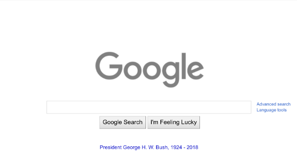 En esta ocasión Google ha eliminado su diseño de logo para demostrar su solidaridad tras la muerte de George H.W. Bush; lo anterior lo ha hecho con una ausencia de colores como muestra de luto.