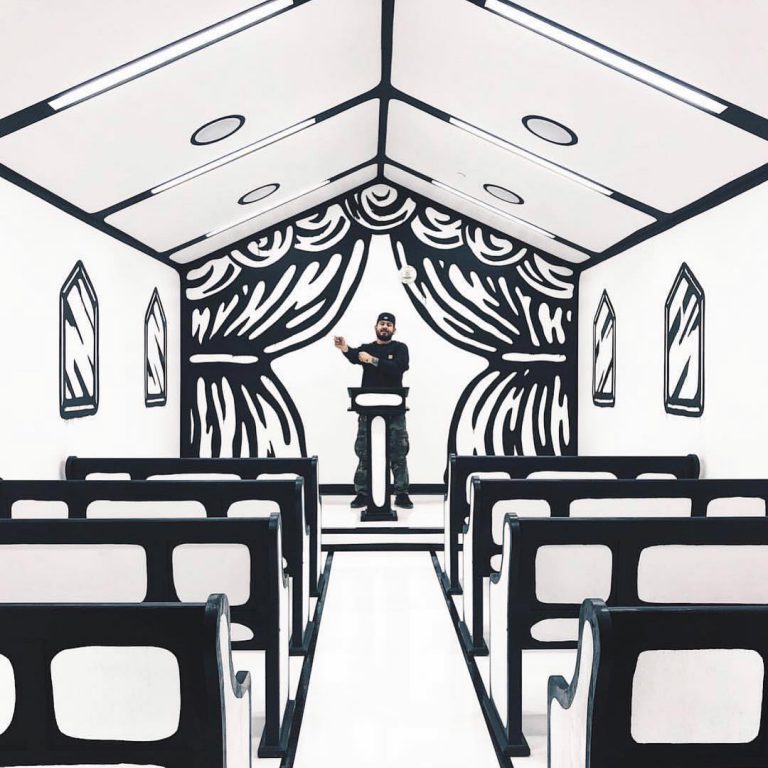 El diseñador gráfico Joshua Vides ha colaborado con una iglesia en Las Vegas para transformarla en una capilla llena de creatividad y que parece sacada de un boceto hecho a mano.
