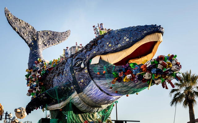 En Italia y con motivo del carnaval de Viareggio se ha creado un peculiar carro alegórico a manera de denuncia sobre la contaminación de los mares y océanos.