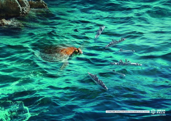 En fin, en esta creativa campaña Dreampack se apoya con figuras plásticas de soldados y barcos que parecen amenazar a estos animales, tal y como sucede con los residuos que contaminan su hábitat; sin duda una interesante campaña que consta de 3 carteles que te dejamos a continuación: