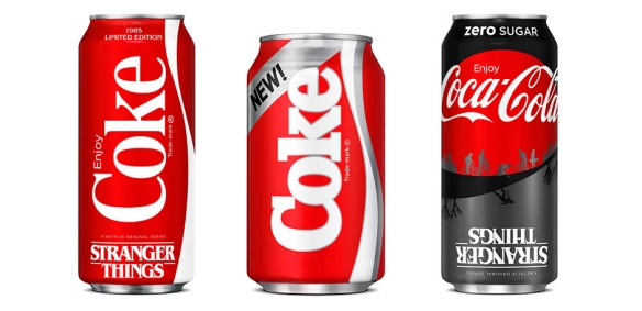 Adentrándonos en el tema Coca-Cola y Netflix se unen en lo que seria su primera colaboración; y en esta reviven a la multicitada New Coke con motivo del lanzamiento de la tercera temporada de Stranger Things.